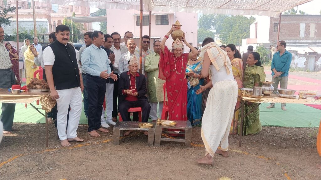 тАЛрддреАрд░реНрде рд░рдХреНрд╖рд╛, рд╕рдВрд░рдХреНрд╖рдг рдФрд░ рд╕рдВрд╡рд░реНрдзрди рдХреЗ рд▓рд┐рдП рд╣рдореЗрд╢рд╛ рддрддреНрдкрд░ рд░рд╣рдиреЗ рд╡рд╛рд▓реЗ рджрд╛рдирд╡реАрд░ рд╕реЗрда рд╢реНрд░реА рднрд░рдд рдХреБрд╕реБрдо рдореЛрджреА рдиреЗ рдкрдВрдбрд┐рдд рдореМрд╕рдо рд╢рд╛рд╕реНрддреНрд░реА рдХреЗ рдореБрдЦрд╛рд░рд╡рд┐рдВрдж рд╕реЗ рдорд╛рдВрдЧрд▓рд┐рдХ рдордВрддреНрд░реЛрдЪреНрдЪрд╛рд░ рдФрд░ рдХреНрд░рд┐рдпрд╛рдУрдВ рдХреЗ рдмреАрдЪ рд╢рд┐рд▓рд╛рдиреНрдпрд╛рд╕ рд╕рдВрдкрдиреНрди рдХрд░рд╡рд╛рдпрд╛ред